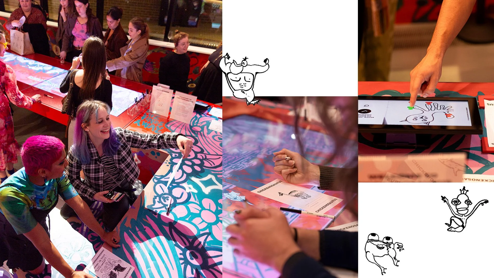 The Chickenosaurus project – part of the Not Natural exhibition – is an experimental immersive play area, where visitors are encouraged to draw their own chimera creature to animate and display in the gallery.
